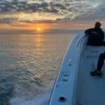 Enjoy an ocean sunrise from one of our center console fishing boats on your next Cape Cod fishing charter!